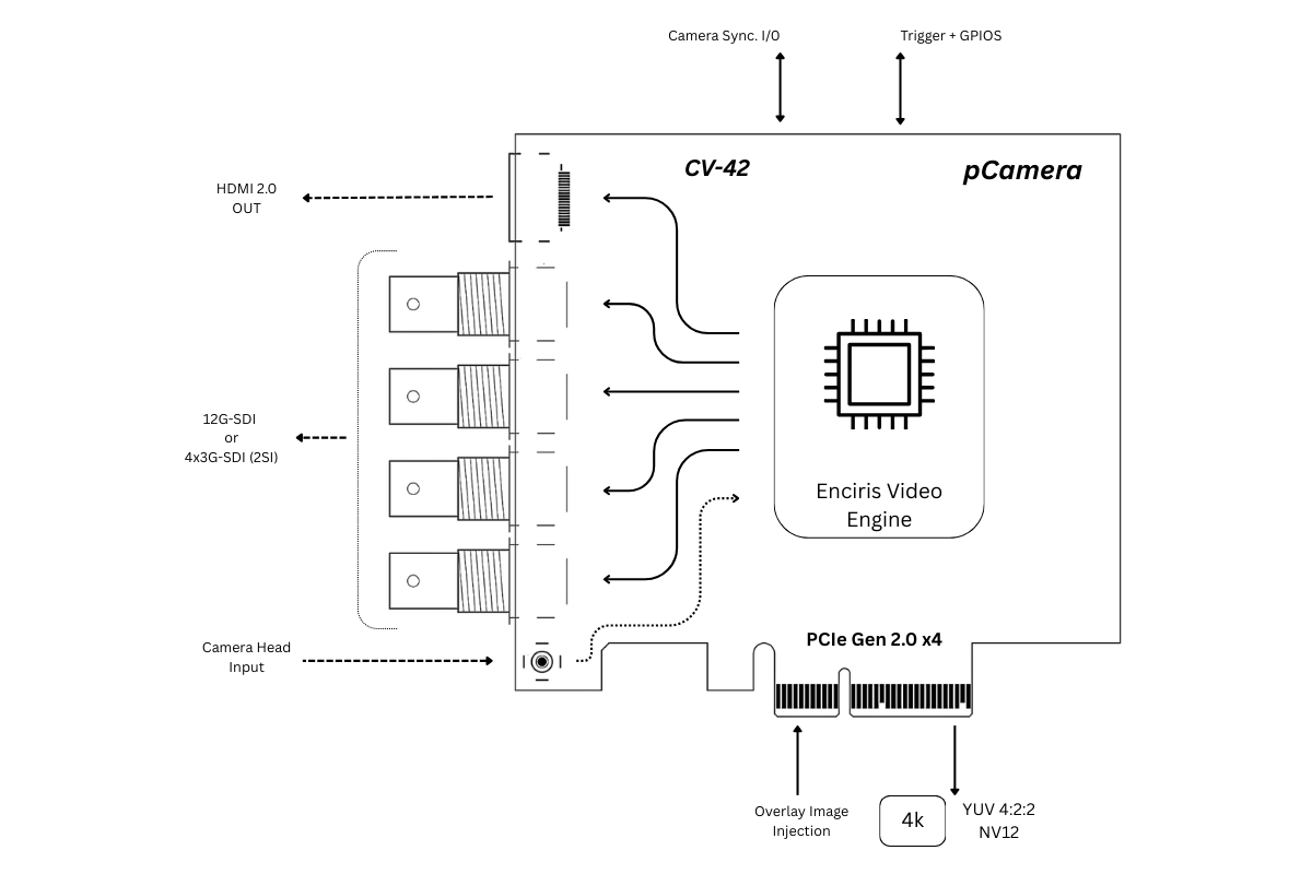 The CV-420 is a high-performance 4K remote head camera designed for OEM, microscopy, and industrial imaging applications. It combines a large Β½-inch 10-bit CMOS sensor with advanced Enciris image processing to deliver crystal-clear native Ultra HD 4Kp60 video with low latency.